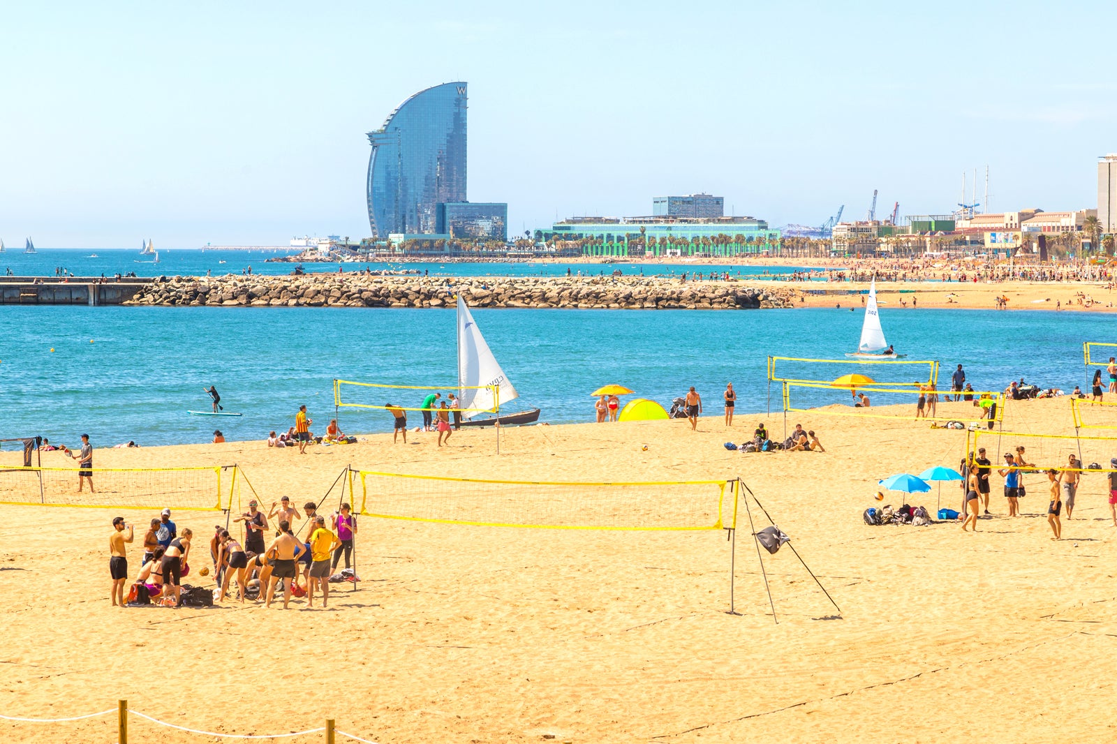Cerca del puerto y rodeada de hoteles, la playa de Sant Sebastià es uno de los arenales más extensos de Barcelona. Es popular entre los visitantes y los barceloneses, por lo que hay una buena mezcla de gente, lo que la hace cosmopolita.