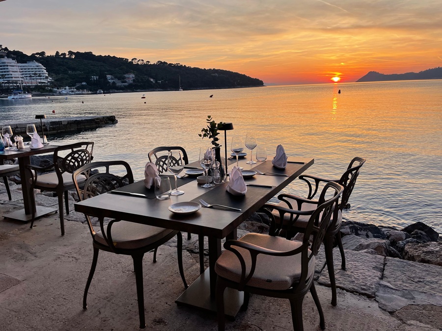 En muchos puntos, las mesas se reparten sobre plataformas rocosas y pequeños muelles, lo que crea la sensación de estar comiendo literalmente sobre el Adriático. La mezcla de historia, murallas iluminadas y mar convierte cada comida frente al agua en uno de los recuerdos más potentes del viaje.