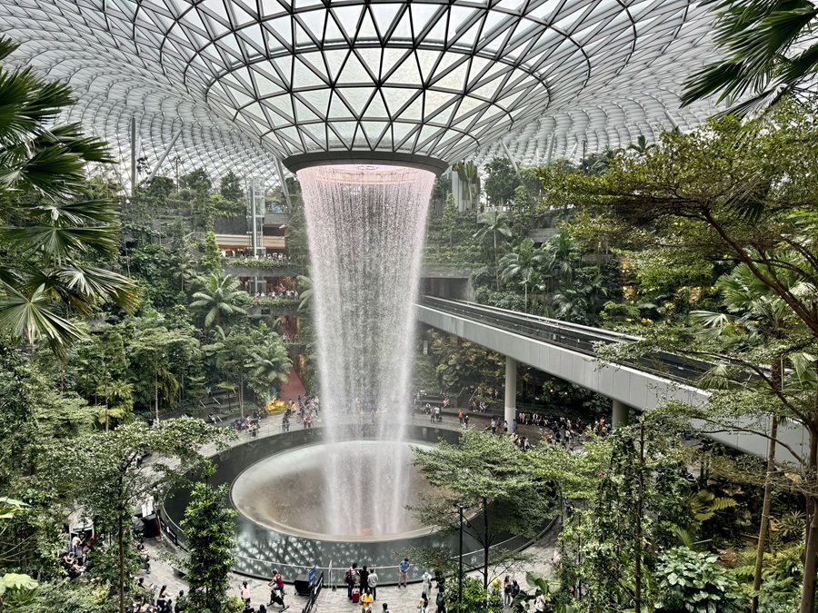 Changi aparece habitualmente en las listas como uno de los mejores aeropuertos del mundo, y al recorrerlo se entiende el motivo. El complejo Jewel, con su cascada interior gigante y sus jardines, parece más un centro de entretenimiento que una terminal aérea.
